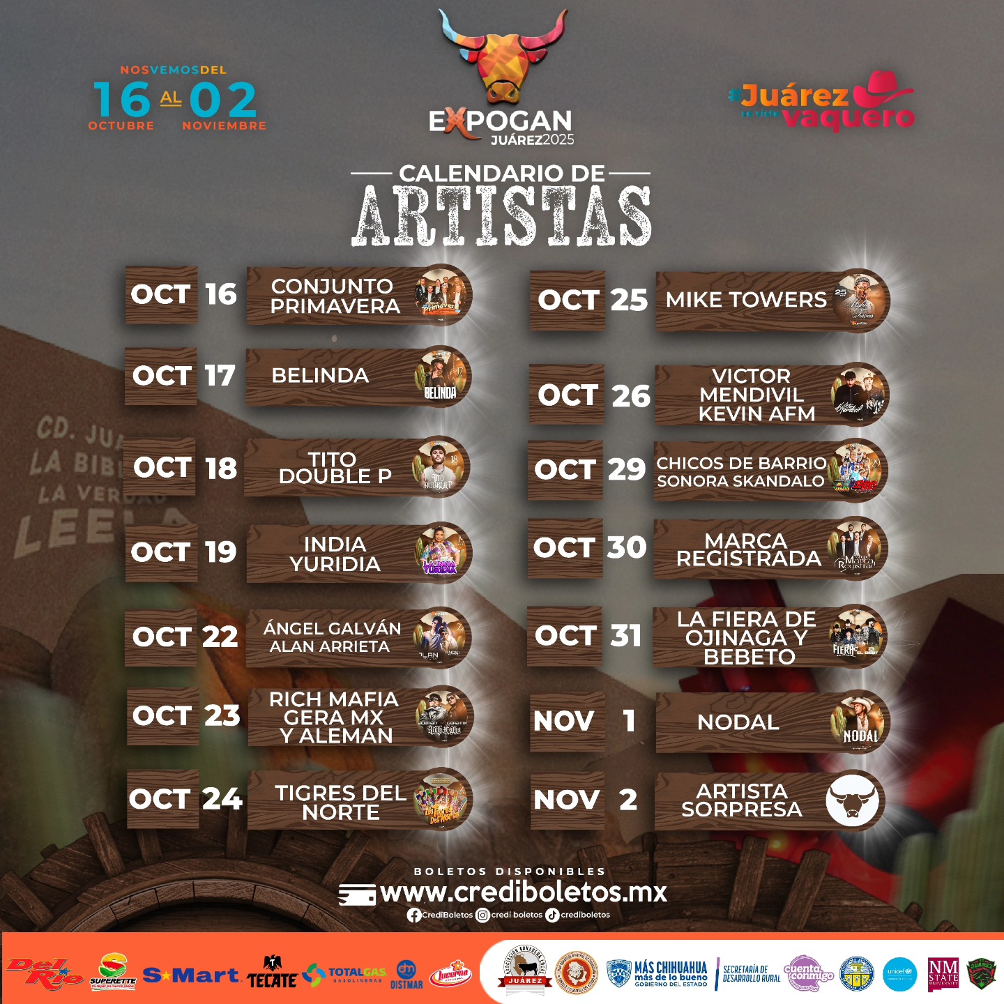 Además, la Expo Ganadera Juárez 2025 contará con un escenario artístico donde se presentarán atractivas bandas, grupos y artistas nacionales e internacionales, sumado a esto la expo gastronómica, juegos mecánicos, zona de bar y varios espectáculos más.