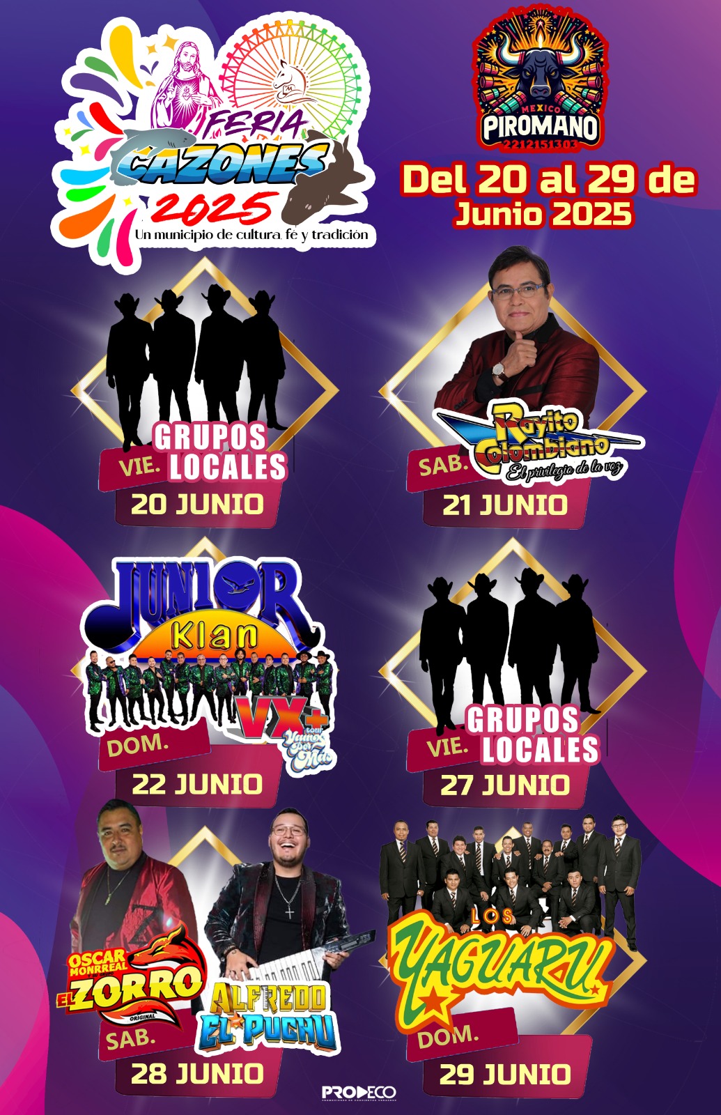 Organizada por el Gobierno Municipal de Cazones, la feria busca ser un espacio de encuentro y recreación para personas de todas las edades. La edición 2025 incluirá una programación artística diversa, con propuestas que van desde el talento local hasta agrupaciones reconocidas en todo el país. El arranque será el 20 de junio con la participación de grupos musicales de la región, mientras que el 21, los asistentes podrán disfrutar del estilo tropical de Rayito Colombiano. El 22 de junio será el turno de Junior Klan, agrupación con décadas de trayectoria en la música popular veracruzana.