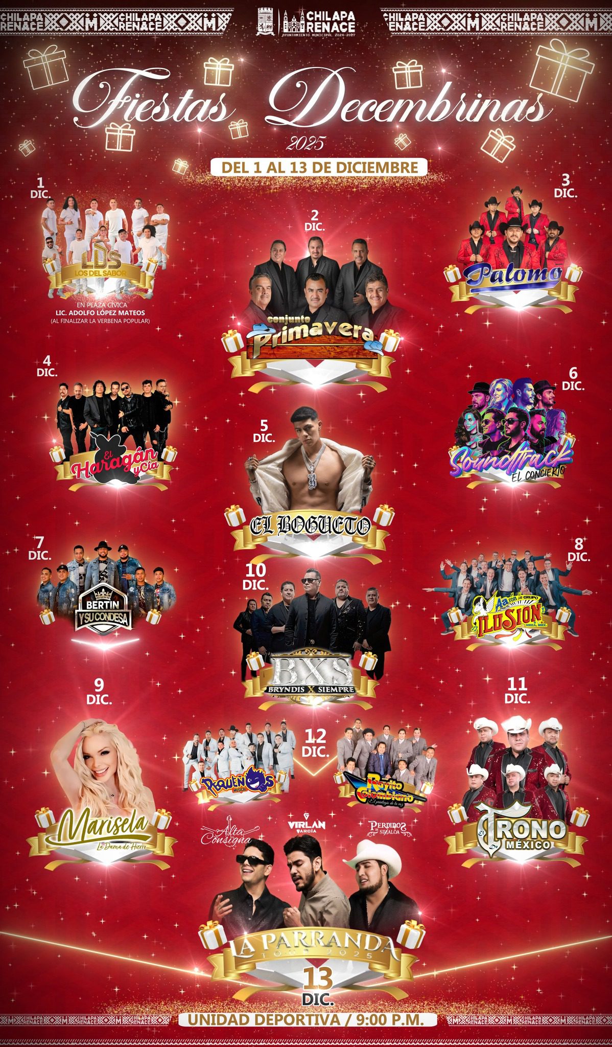 - 13 de diciembre – La Parranda (Alta Consigna, Virlán García, Perdidos de Sinaloa)