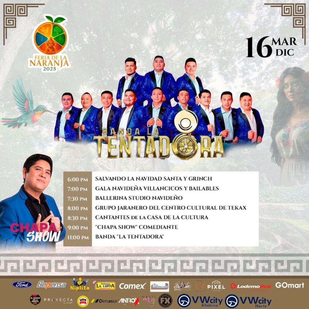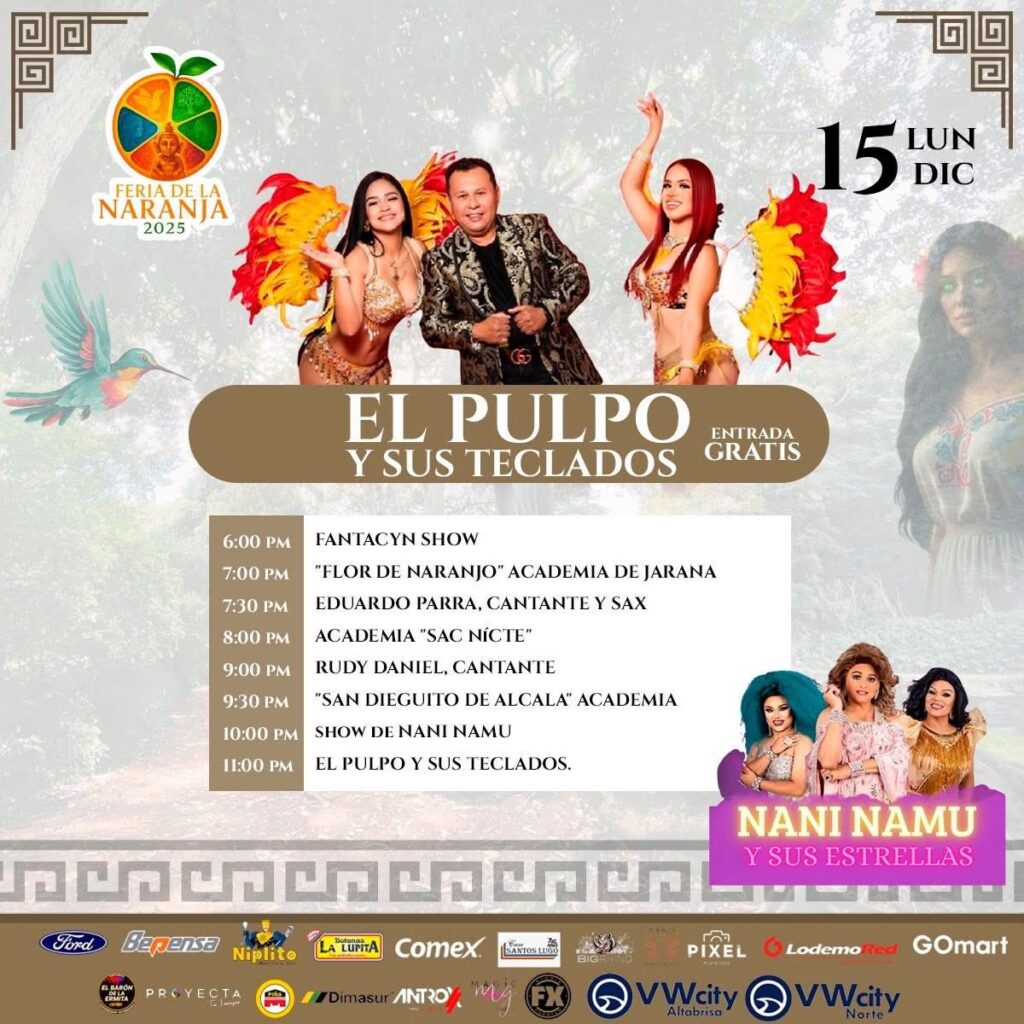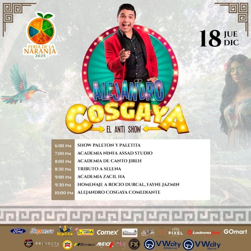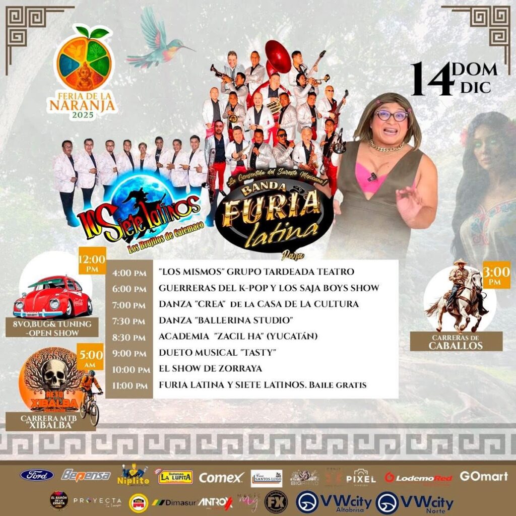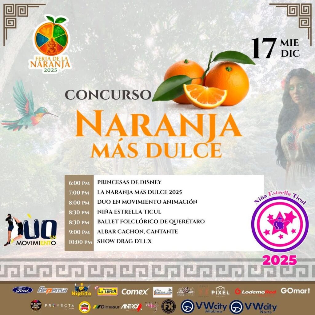 Del 11 al 21 de diciembre se celebrará la Feria de la Naranja Oxkutzcab 2025 en el Recinto Ferial, donde se presentarán eventos musicales, actividades agrícolas, exposiciones artesanales, bailes regionales y un programa pensado para público de todas las edades. Esta edición retomará la tradición que distingue a Oxkutzcab como una zona clave en la producción citrícola del sur de Yucatán, con espacios dedicados a productores locales y a la muestra de sus cultivos.
