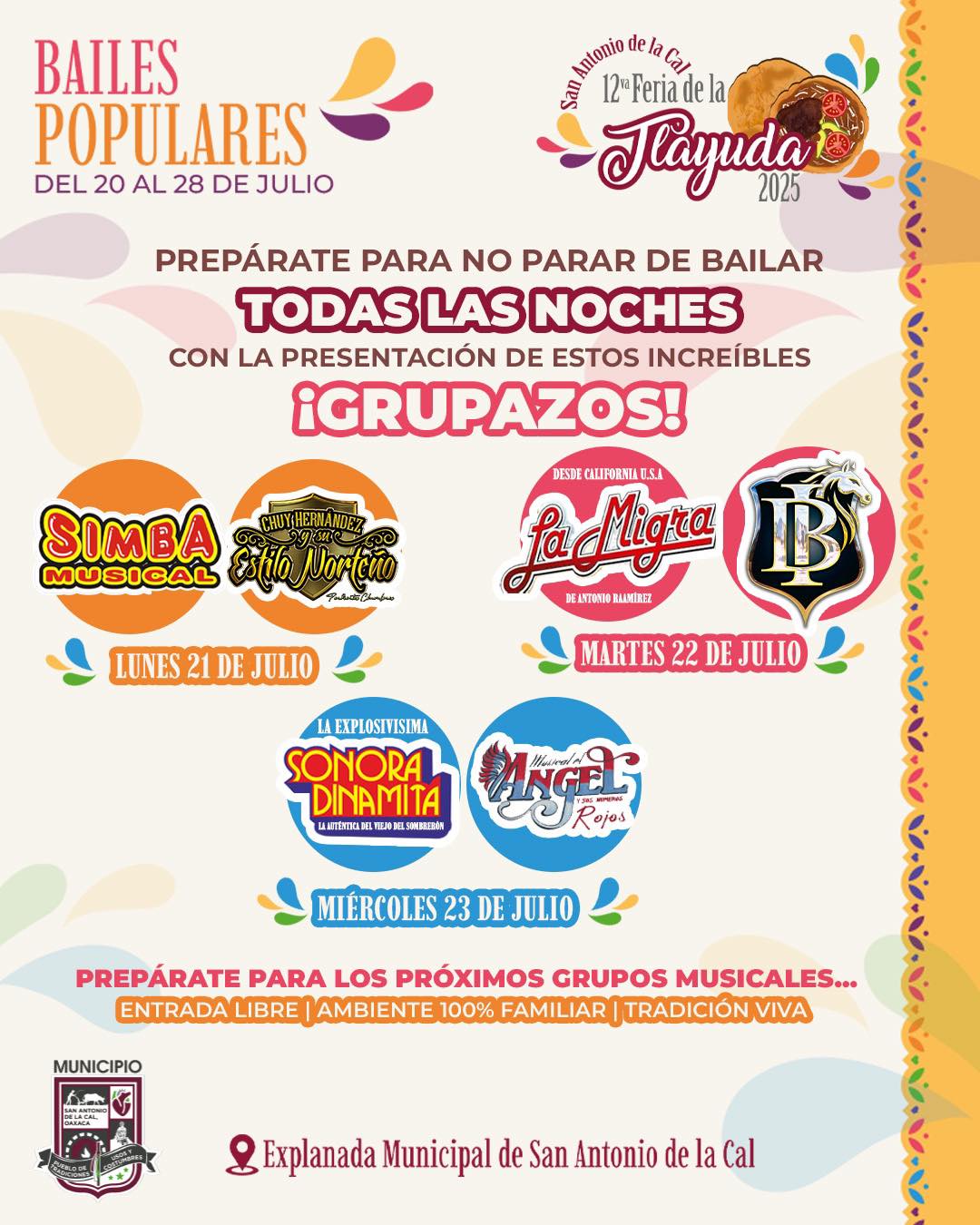 Del 20 al 28 de julio llega la edición número 12 de la Feria de la Tlayuda San Antonio de la Cal 2025 y contará con un programa de actividades culturales, artísticas, deportivas y musicales.