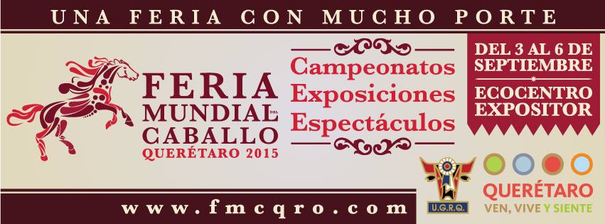 La Feria del Caballo Querétaro 2015 o Feria Mundial del Caballo es una feria joven que se celebrará del 3 al 6 de septiembre. Esta gran feria mundial presentará campeonatos, concursos, exposiciones y eventos con las mejores razas de caballos, además de un nutrido programa artístico del teatro del pueblo.