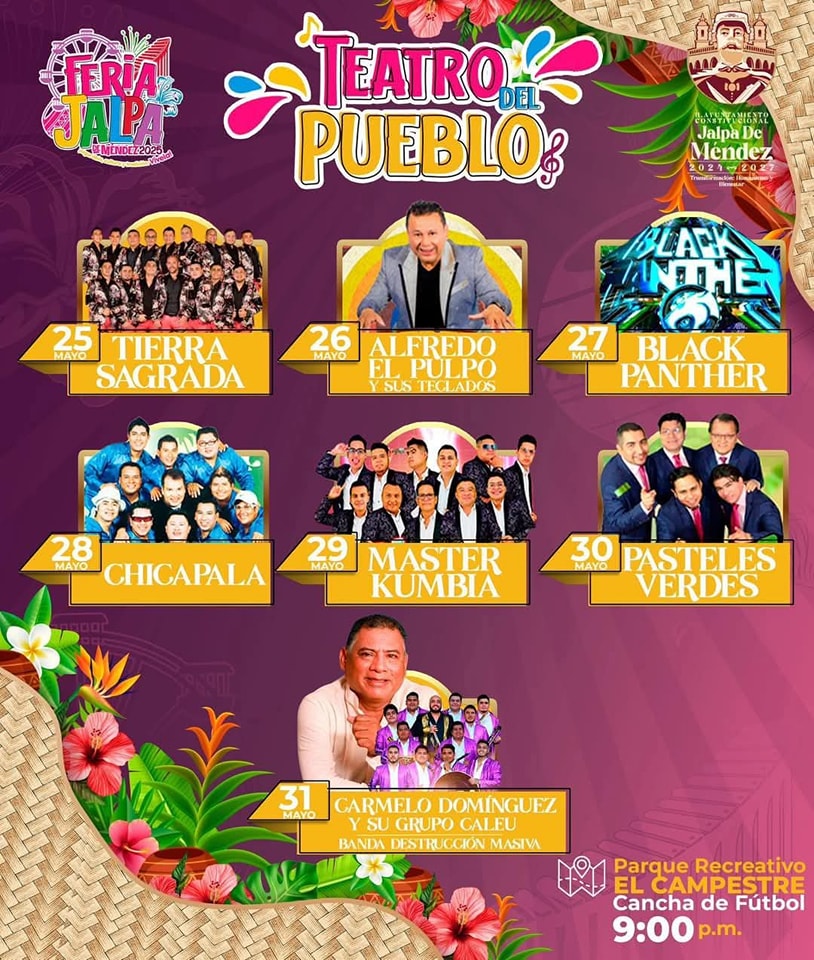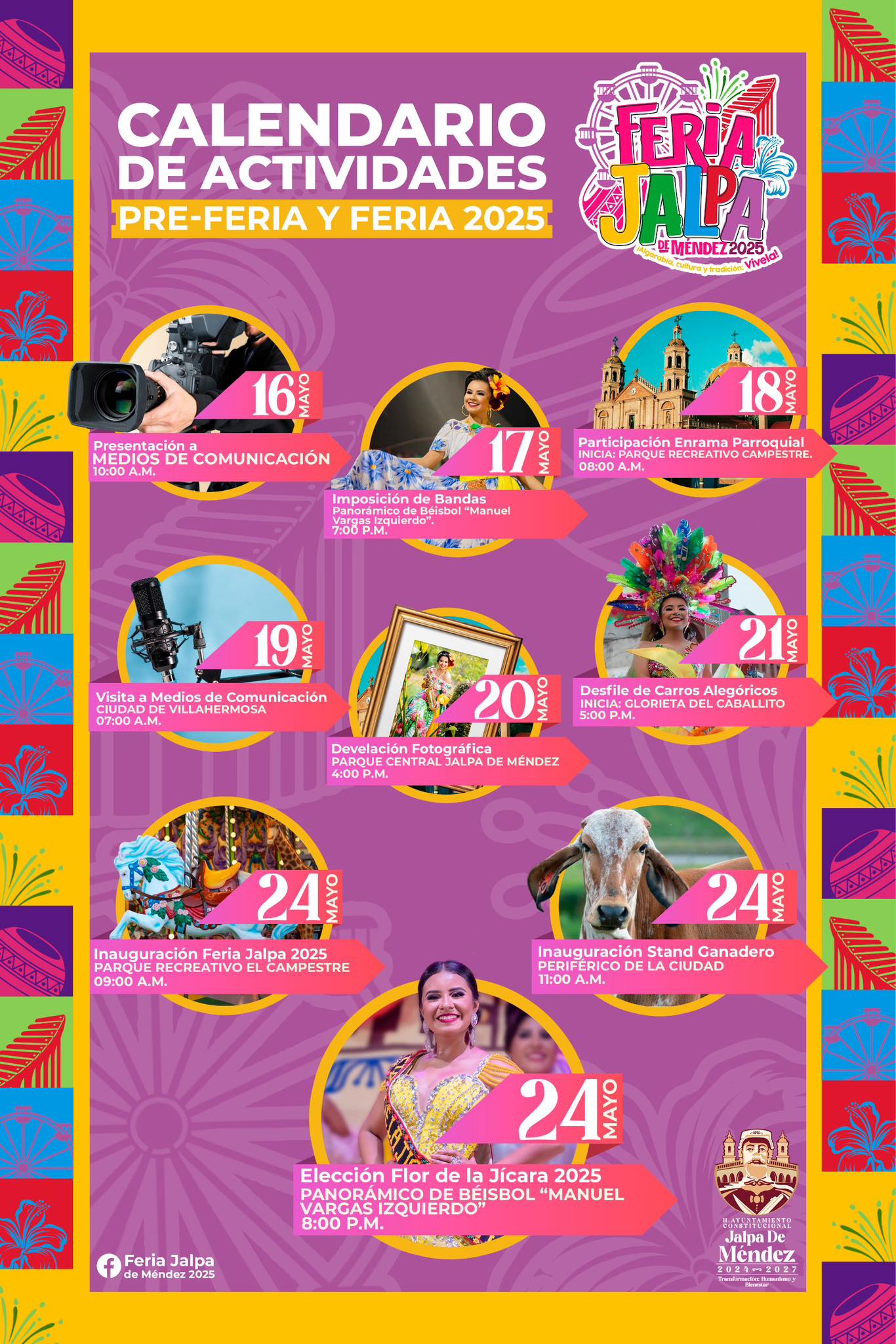 Ya se acerca la Feria Jalpa de Méndez 2025, que se realizará del 17 al 31 de mayo con una duración de una semana. Es de esta manera que regresará la alegría y la fiesta tradicional al municipio de Jalpa de Méndez y por ende la re activación económica.