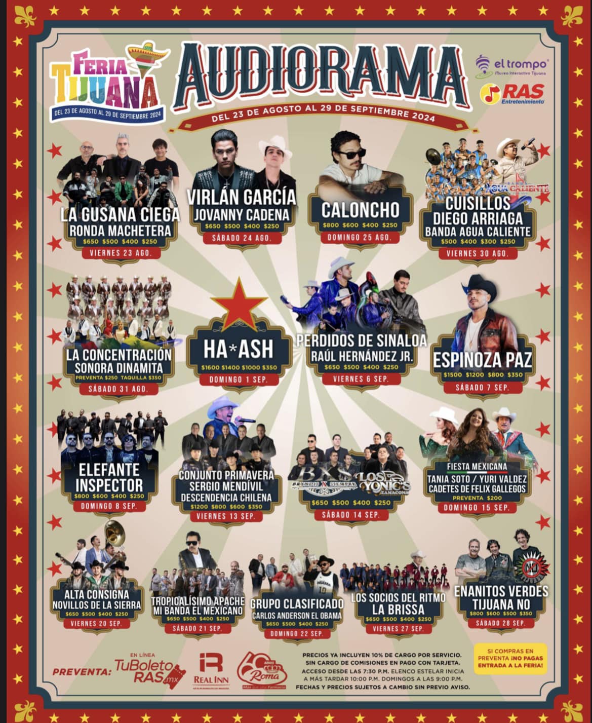 Del 23 de agosto al 29 de septiembre se celebrará la Feria Tijuana 2024, la feria más esperada del año y ya cuenta con cartelera de Palenque y Audiorama de las Estrellas.