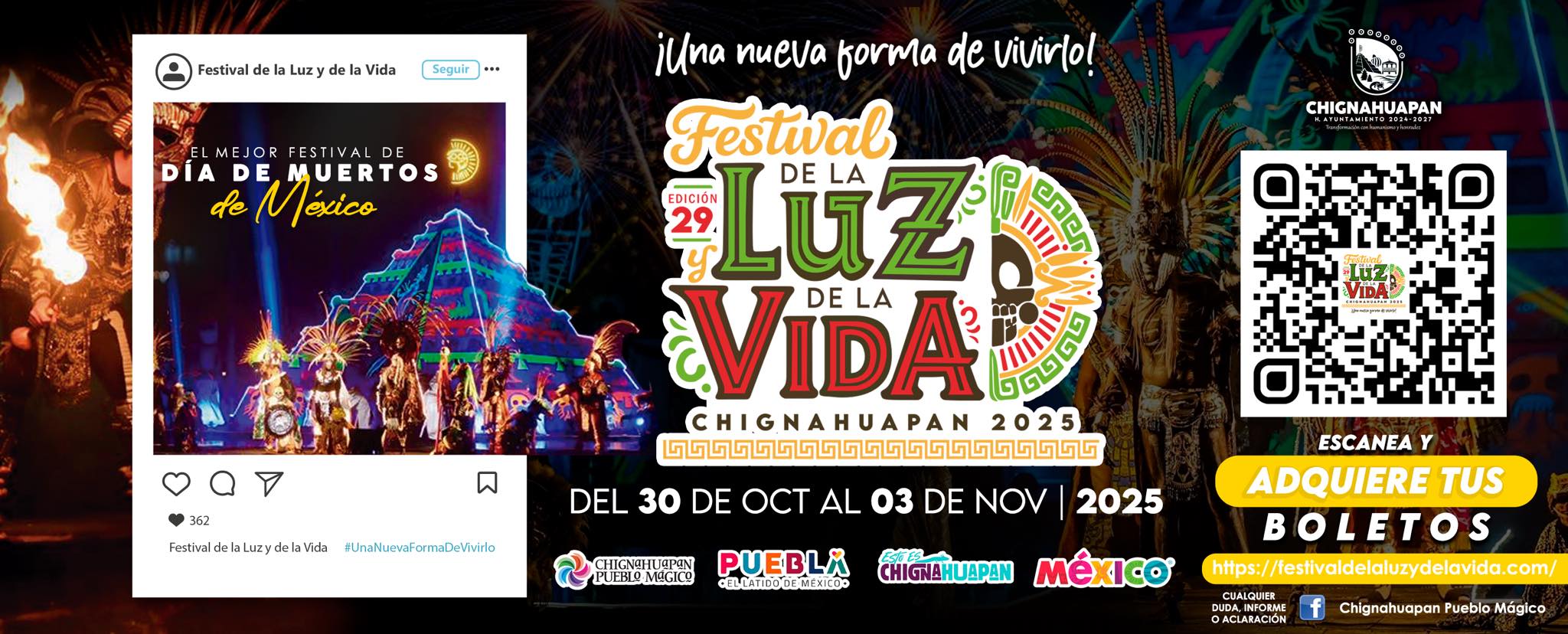 El Festival de la Luz y de la Vida Chignahuapan 2025 es un evento anual que tiene lugar en la ciudad de Chignahuapan, México. El festival celebra la historia y la cultura de la ciudad y las tradiciones del 2 de noviembre, Día de Muerto, y presenta una variedad de actividades y actuaciones tradicionales.