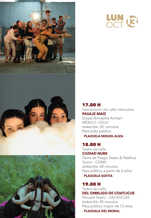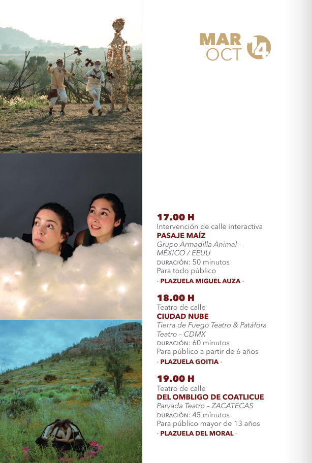 • 19:00 hDel Ombligo de Coatlicue – Parvada Teatro – Zacatecas – Plazuela del Moral