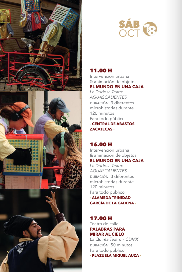 • 11:00 hEl mundo en una caja – La Dudosa Teatro – Aguascalientes – Central de Abastos Zacatecas